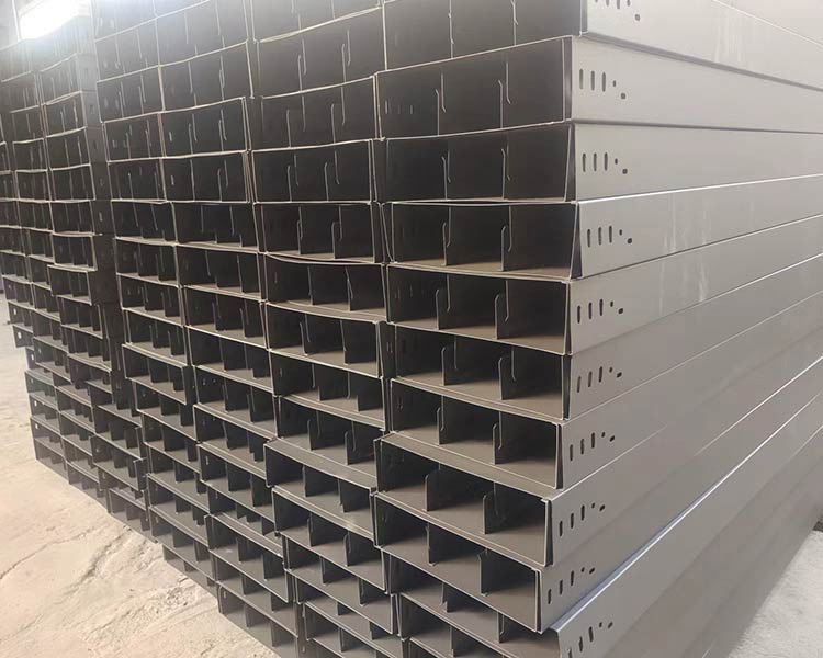 2、托盤式電纜橋架:托盤式電纜橋架是石油、化工、輕工、電訊等方面應用廣泛的一種。它具有重量輕、載荷大、造型美觀、結構簡單、安裝方便等優點。它即適用于動力電纜的安裝,也適合于控制電纜的敷設。